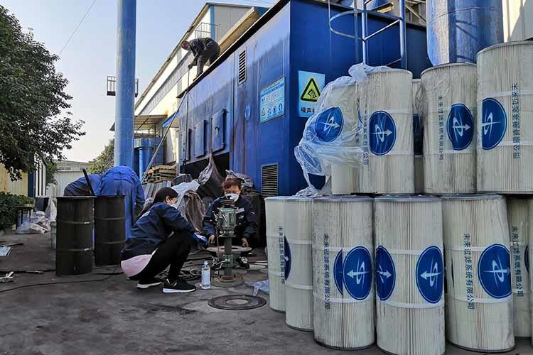 2018年10月底,公司员工加班加点为客户安装除尘滤筒,得到了客户充分赞誉